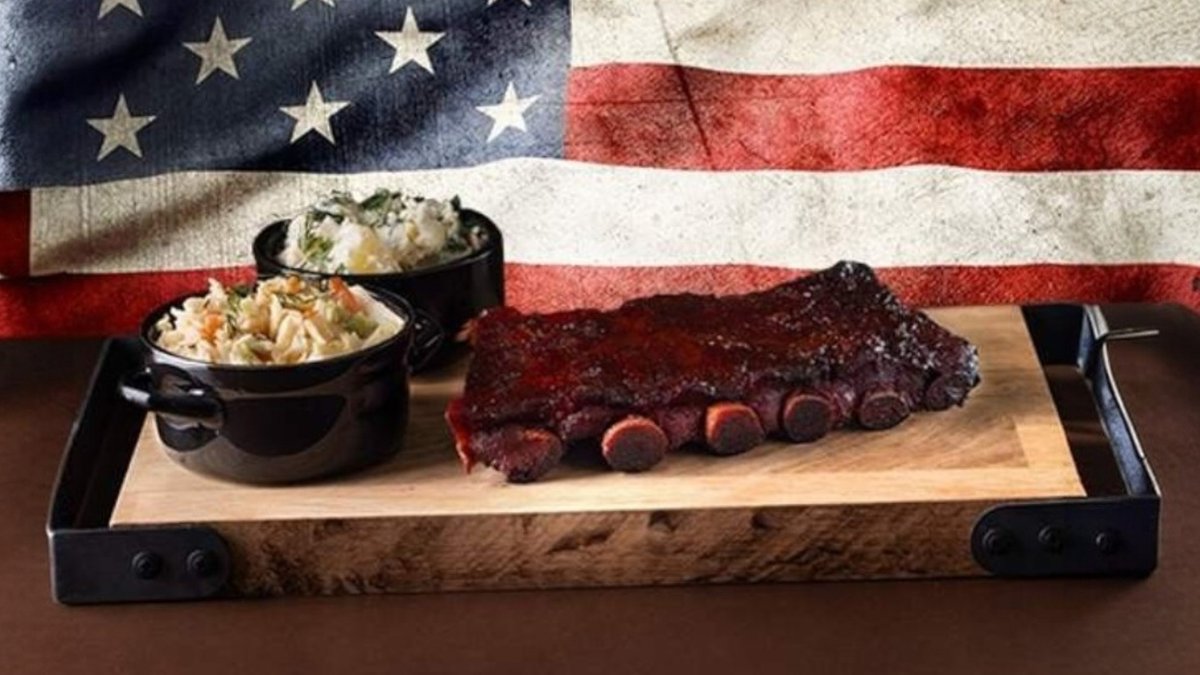 натривка от микс сухи подправки, глазирани с Texas барбекю сос, опушени с ябълково дърво и еко въглища от дъб, бук и габър, сервират се с гарнитура от картофено пюре 400г