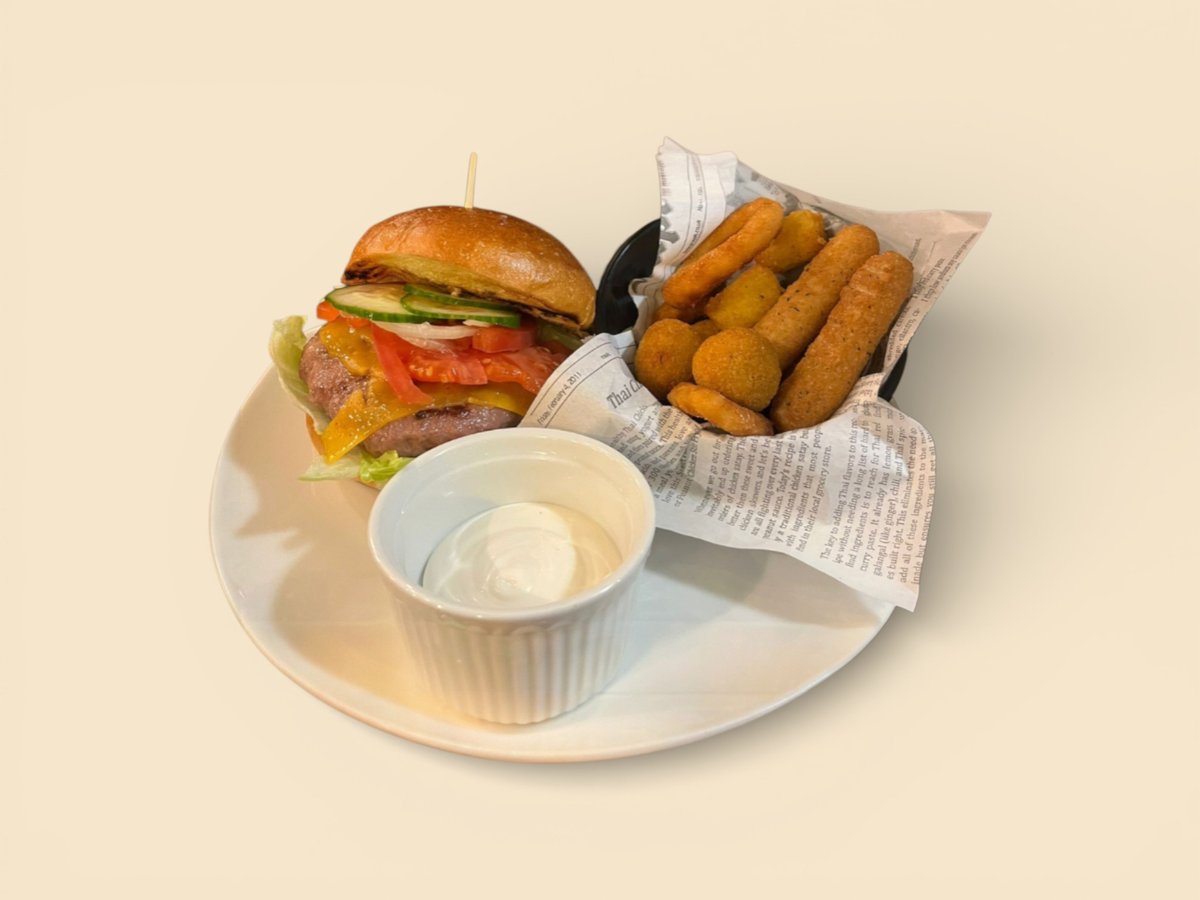 телешко, сирене, лук,домат, туршия, маруля