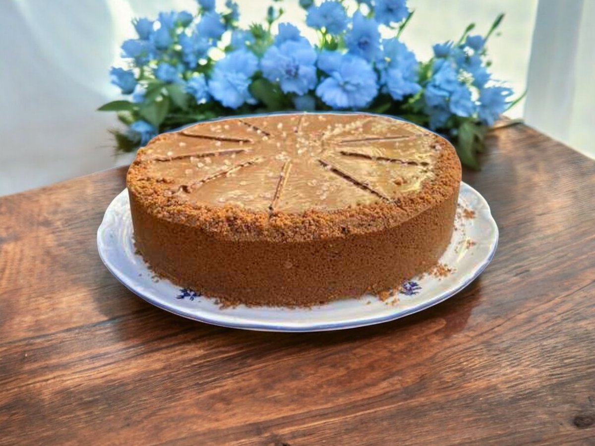 ароматна бисквитена торта, фин маслен крем, ром, кафе и орехов крокан