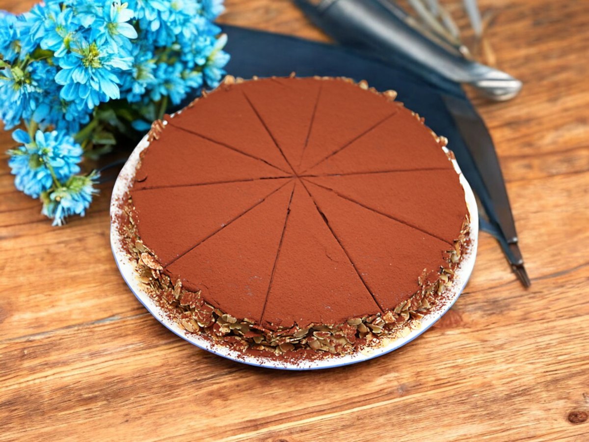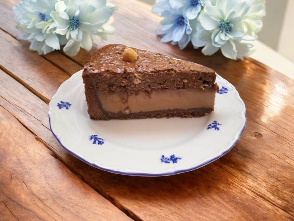 хрупкава орехово-бисквитена основа, съчетана с ефирен мус от бял и натурален шоколад