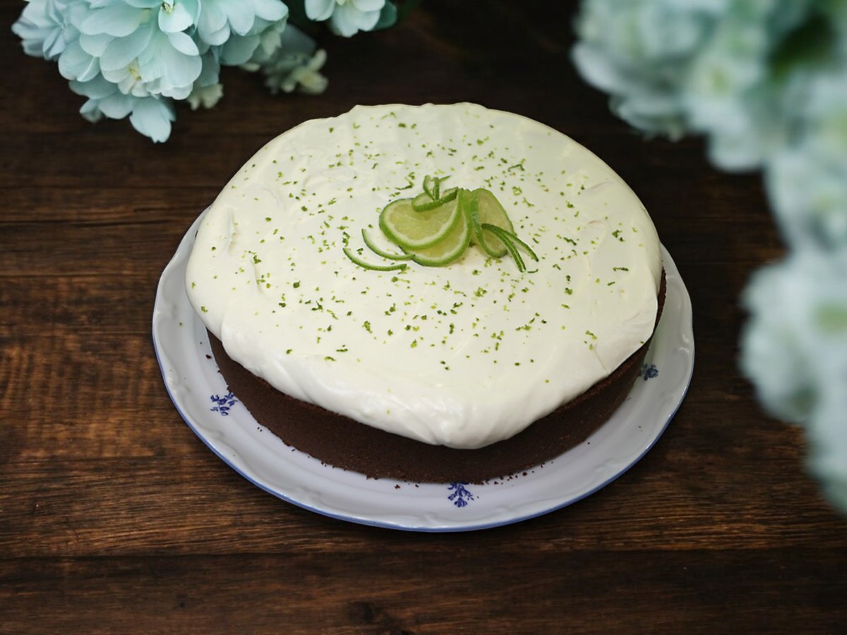 бисквитена основа, крема сирене, заквасена сметана, фреш от лайм