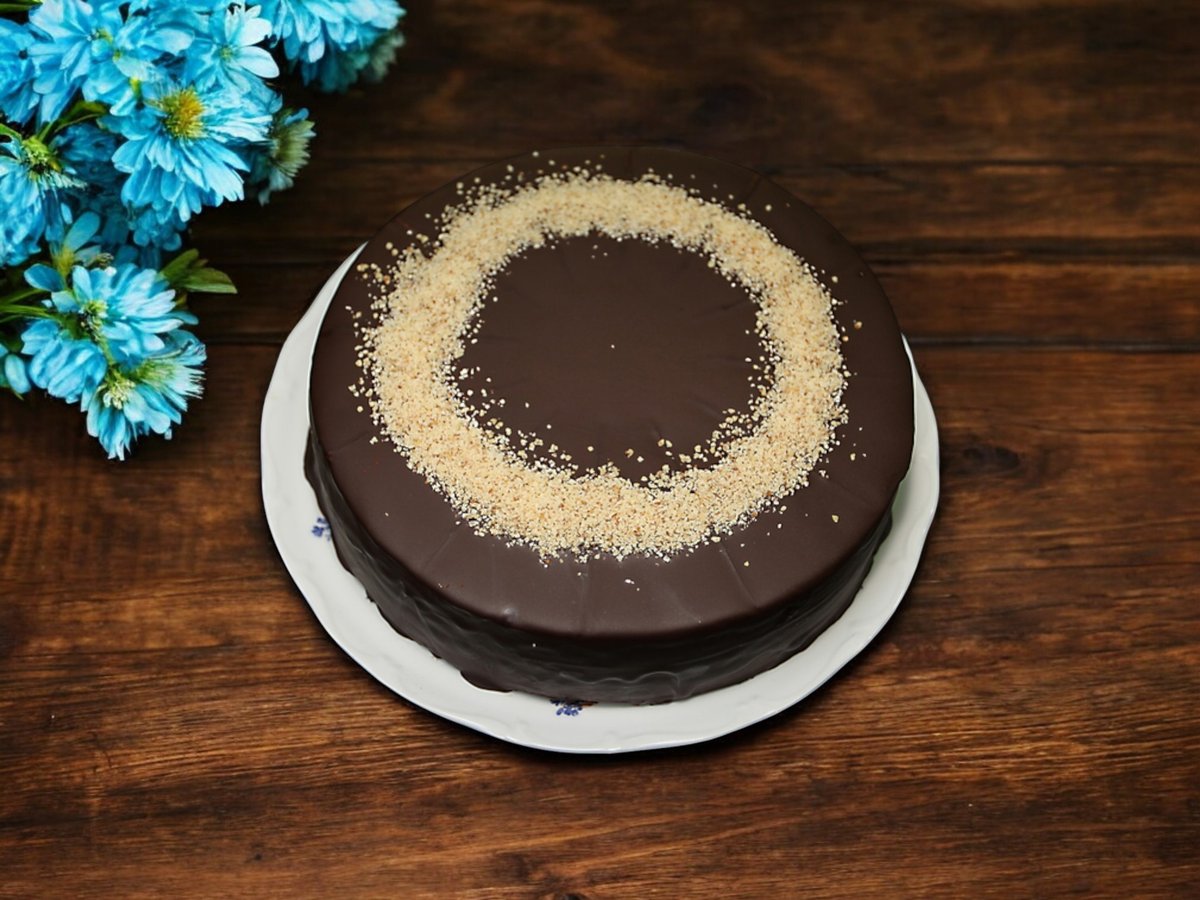 класическа гараш торта по рецепта от преди 45 години... Орехови платки, пухкав шоколадов ганаш "Valrhona", ром и орехи