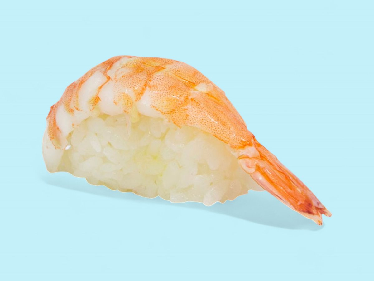 бланширана скаридка, върху легълце от суши ориз, 2бр, 60г
