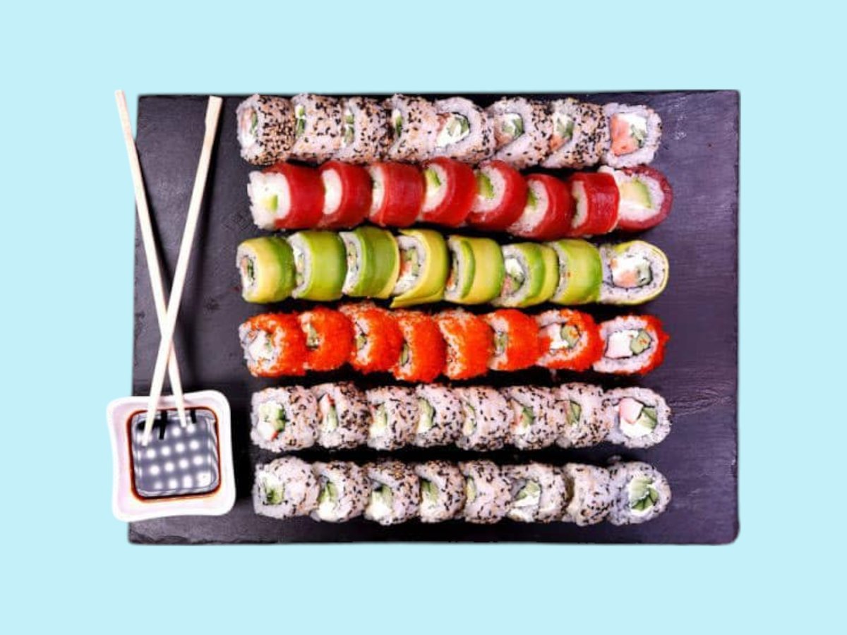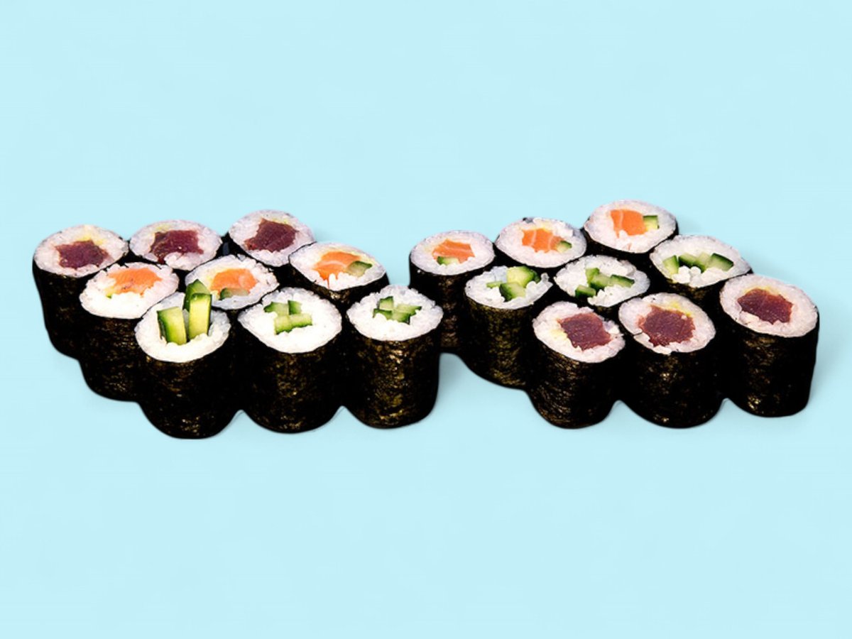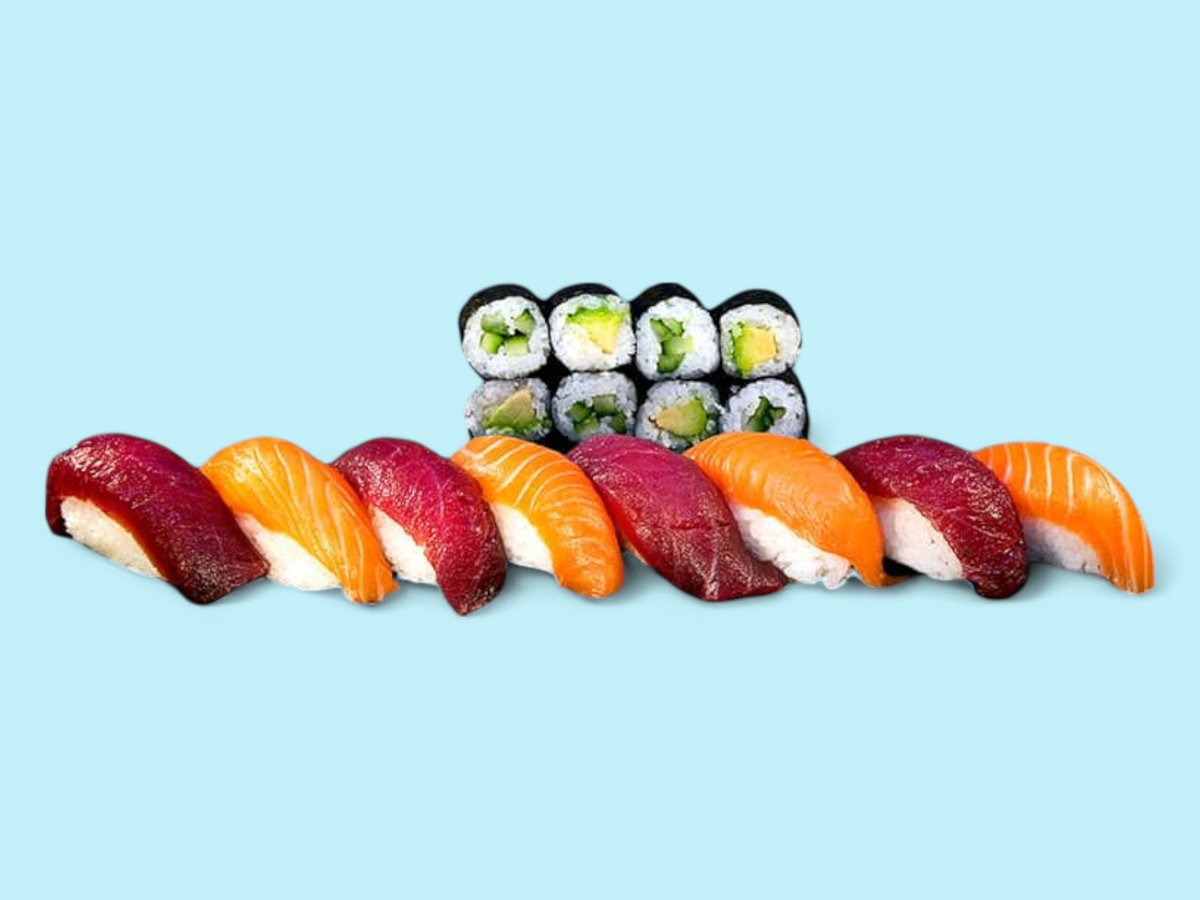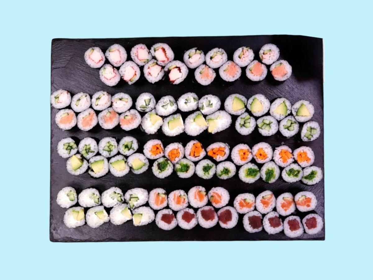 1550г, взривяваща сетивата комбинация от нашите най-пъстри предложения като Яма рол, Дъга, Саке рол татаки, Филаделфия сурими, Филаделфия тон, Хосо тон, Хосо краставичка и хосо сьомга.