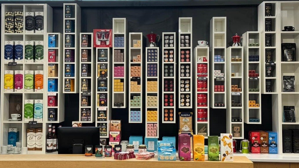 A shop for alcoholic and non-alcoholic beverages, savory and sweet goods.