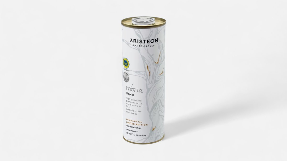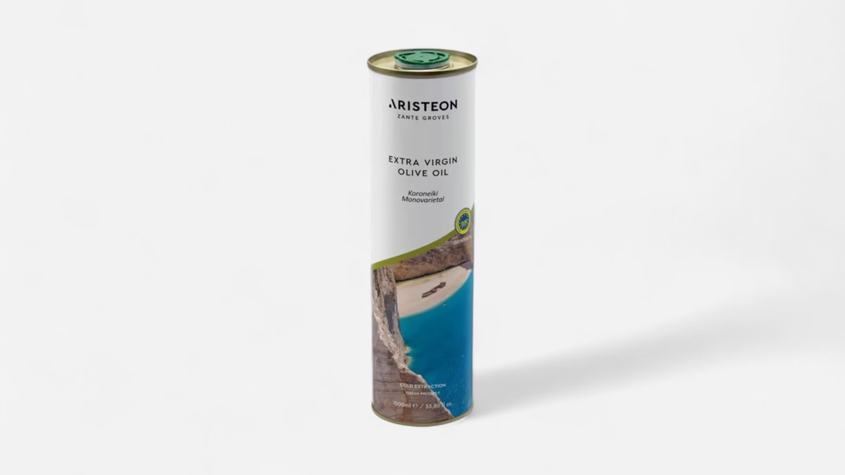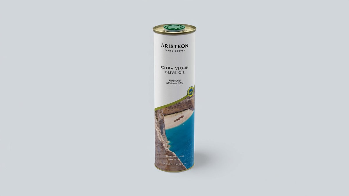 Authentic Greek extra virgin olive oil Aristeon from the island of Zakynthos.