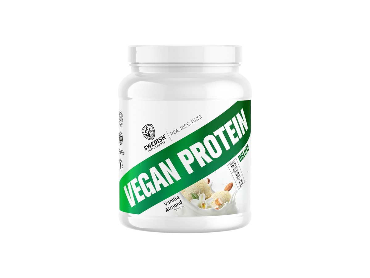 €42.41 (BGN 82.95)SWEDISH Supplements Vegan Protein Deluxe | from Pea, Rice and Oats [750 грама] Ванилия с Бадеми