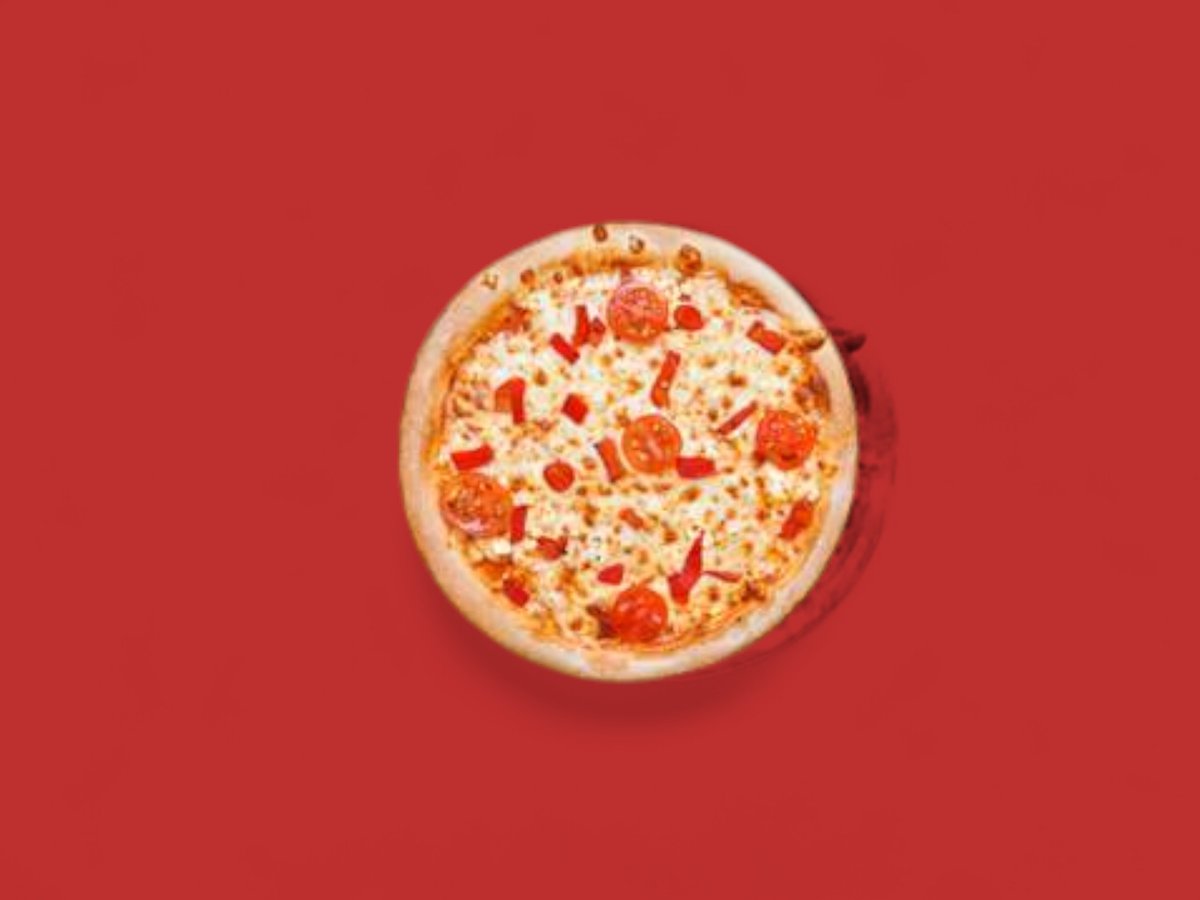 пица сос, печен пипер сирене, моцарела, чери домати
