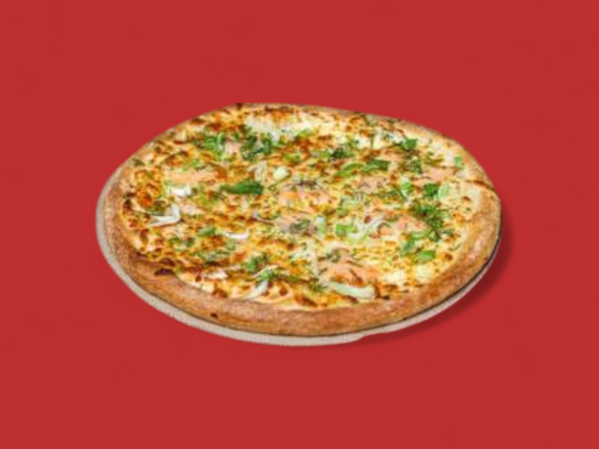 сметана, пушена сьомга, лук пресен, магданоз, моцарела 50см