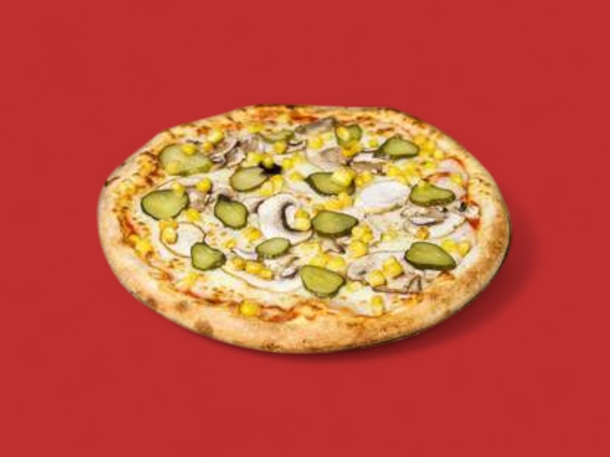 пица сос, пилешко роле, гъби, царевица, кис. Краставици, моцарела 50см