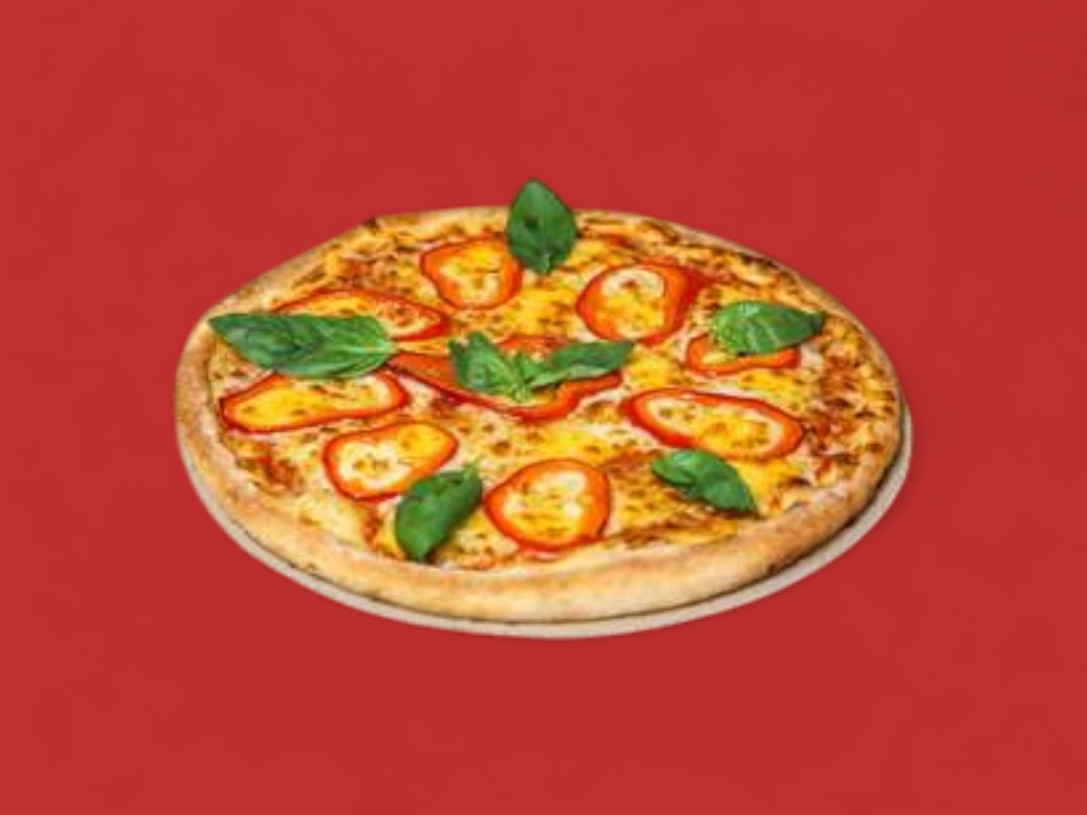 пица сос, печен пипер сирене, моцарела, чери домати 50см