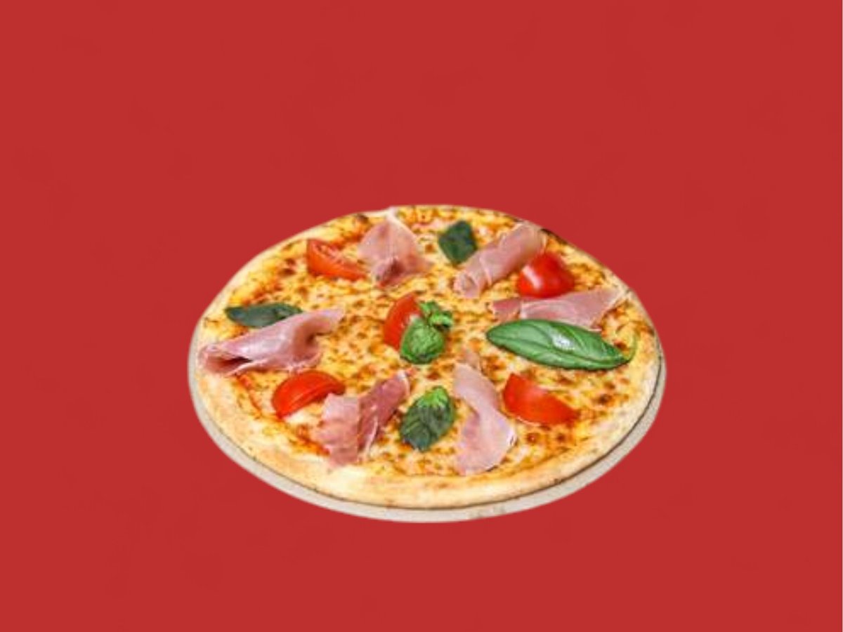 пица сос, прошуто, чери домати, пресен босилек, моцарела