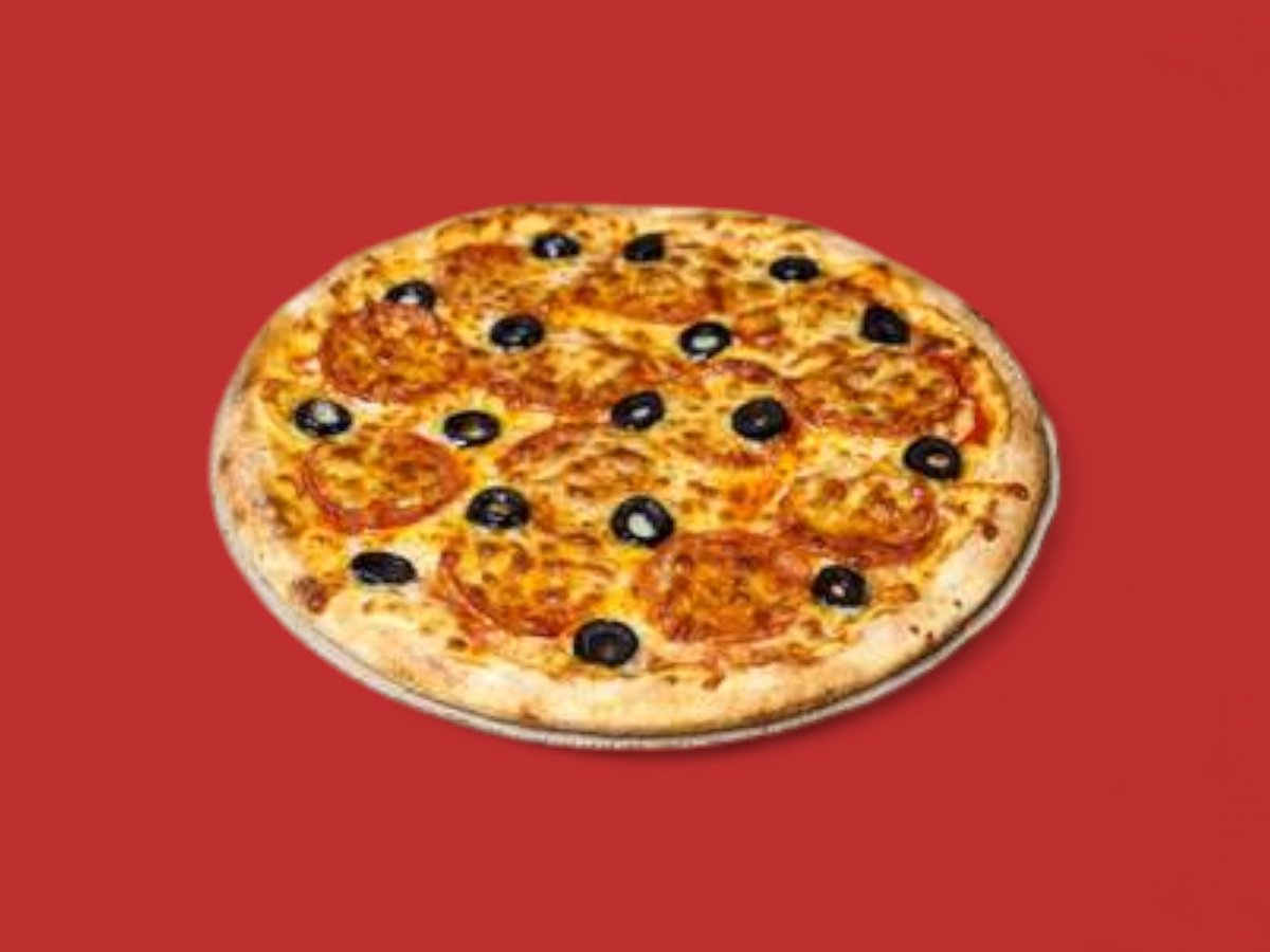 доматен сос, салам милано, моцарела, зелен пипер, червен пипер, маслини 50см