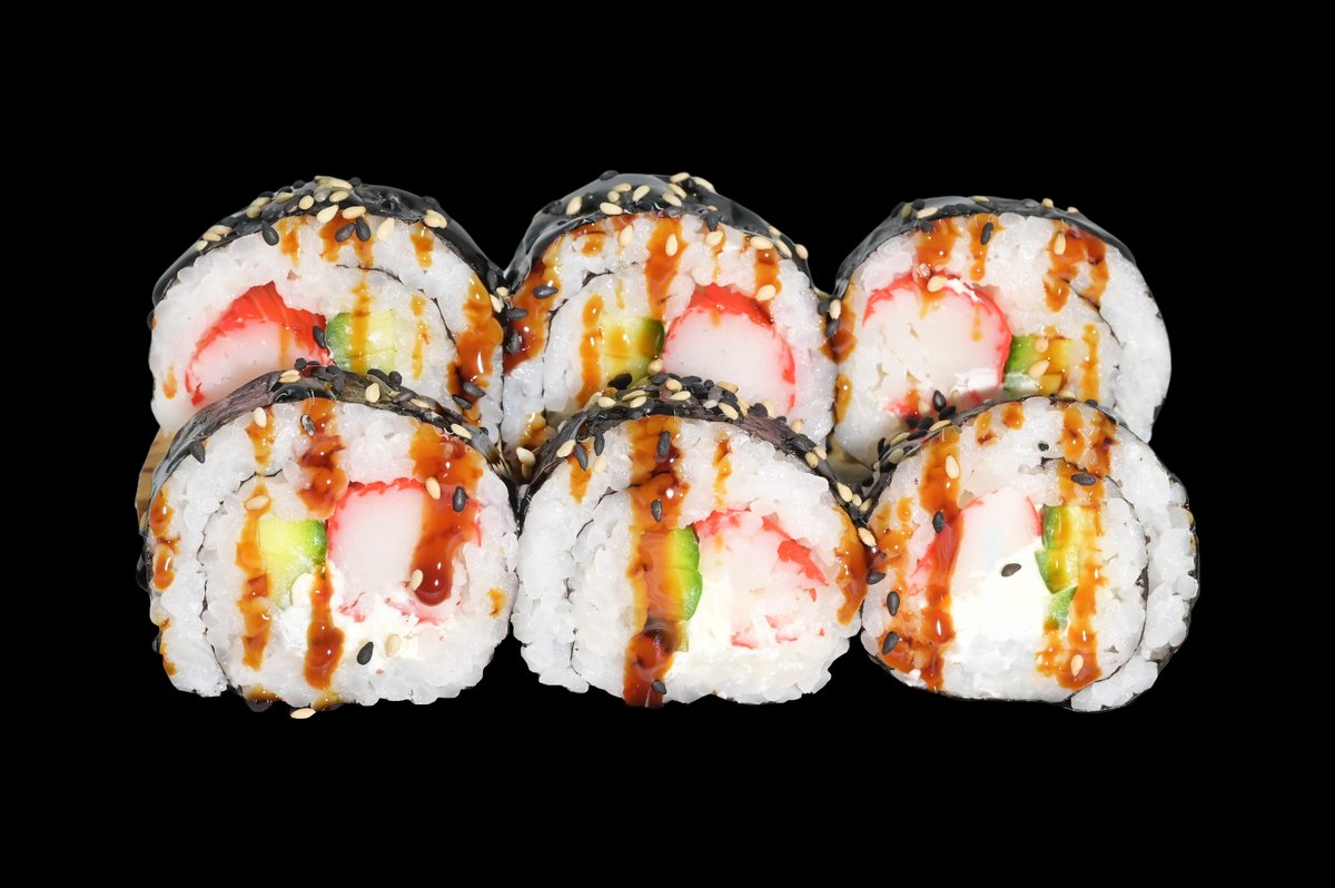 ориз, нори, краб, Филаделфия, краставица, унаги сос, сусам смес 6 броя - 190г