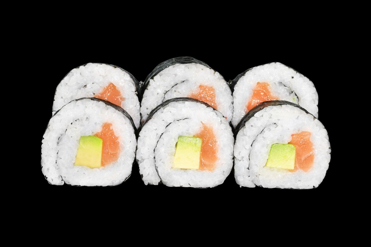 ориз, нори, авокадо и сьомга 6 броя - 180г