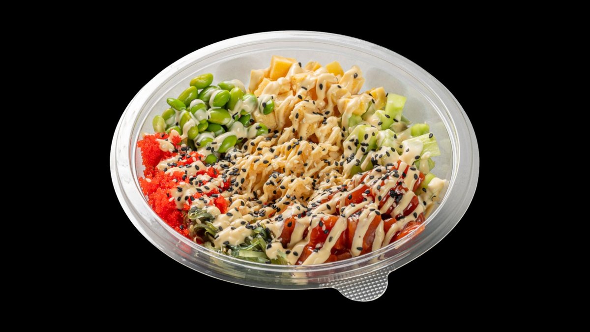 ориз, съомга филе, поке сос, едамаме, гома уакаме, тамаго омлет, тобико, краствица, Филаделфия, соева майонеза 400г