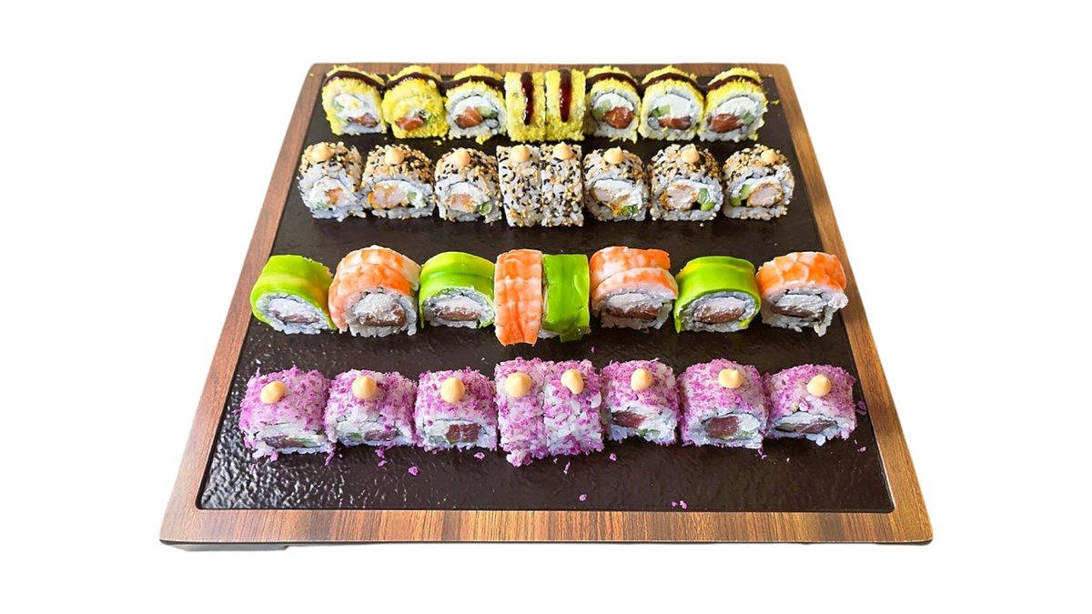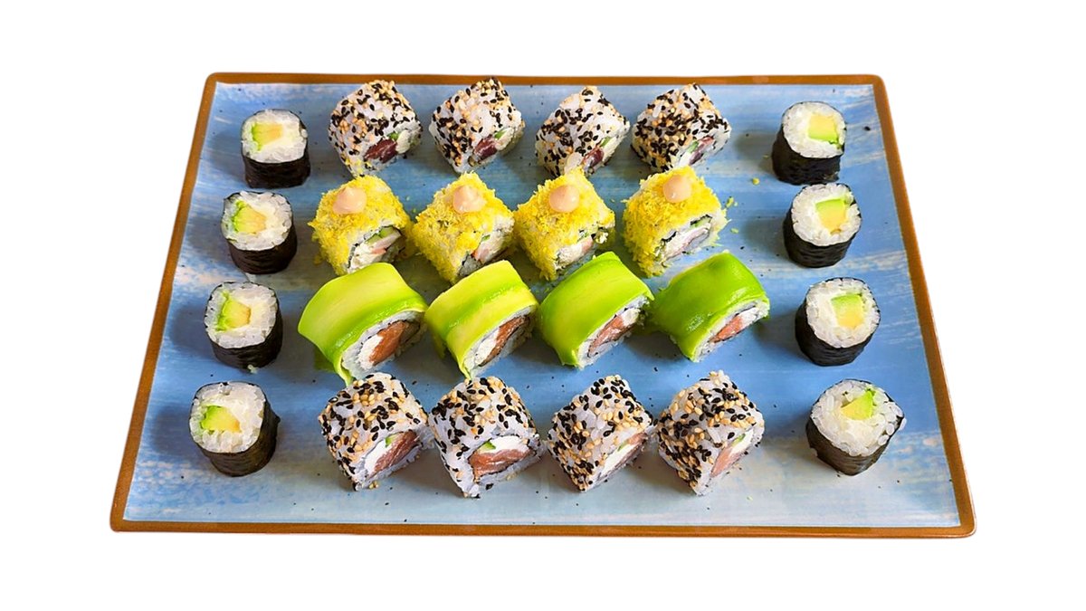хосомаки авокадо 86р Урамаки пушена сьомга 4 6р урамаки форест 4 6р урамакитон 4 6р урамаки криспи скарида 4 6р 24 бр, 500г