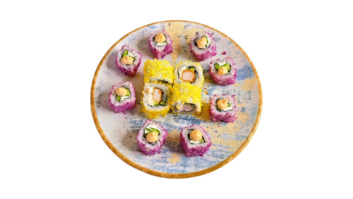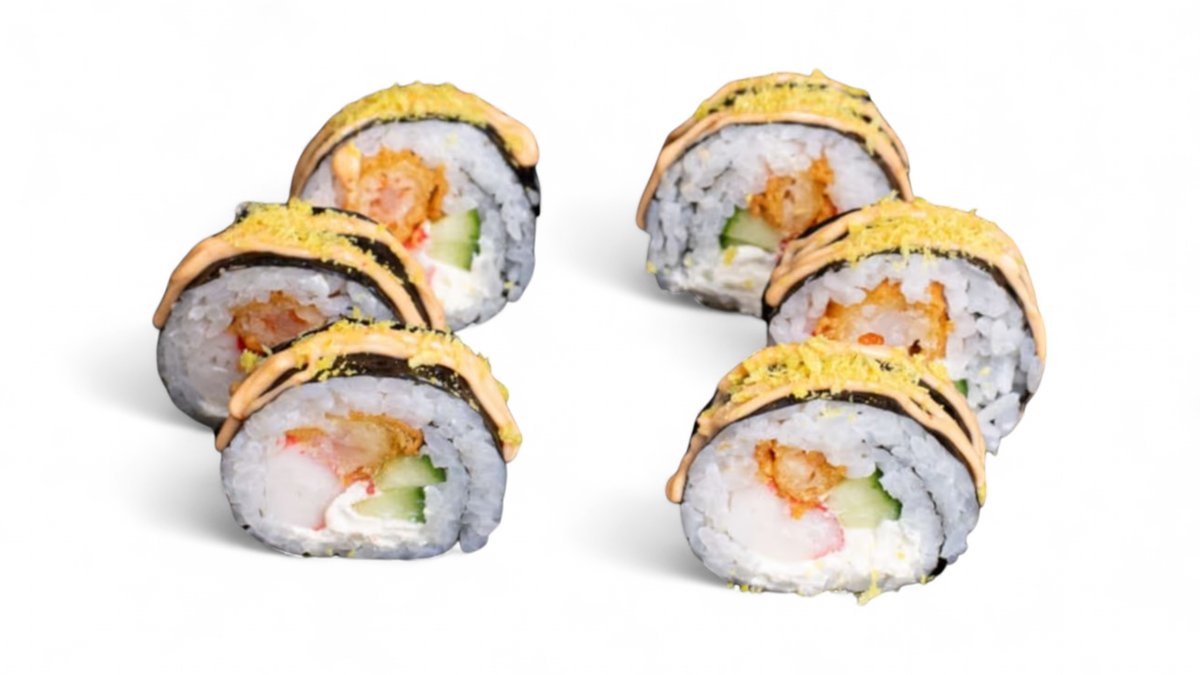 ориз, Филаделфия, краставица, хрупкава скарида, месо от рак, чили майонеза, хрупкава темпура 6 бр, 140г