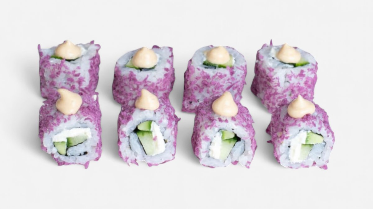 ориз, нори, лилава хрупкава темпура, краставица, японска майонеза, Филаделфия 8 бр 100г