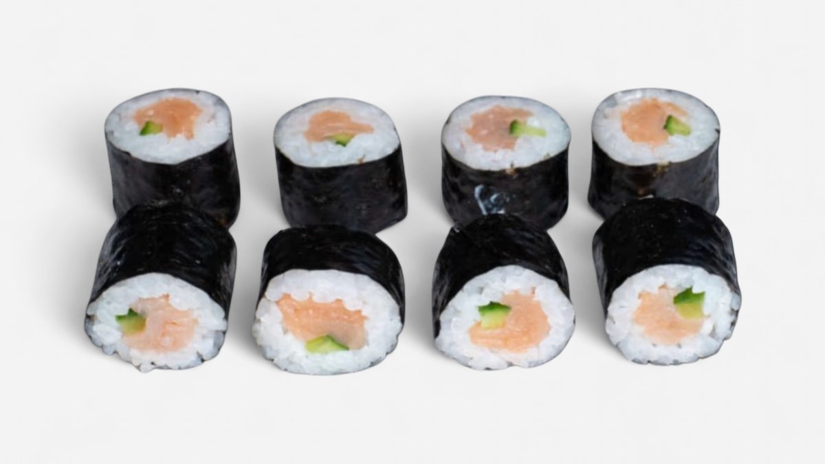 ориз, нори, сурова сьомга, краставица 8 бр 100г