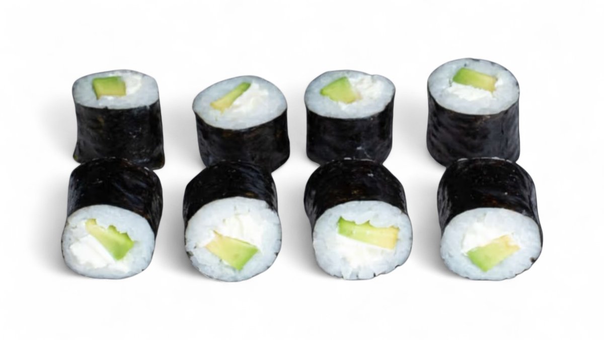 хосомаки Филаделфия и краставица 8 бр, хосомаки Филаделфия и авокадо 8 бр, хосомаки пушена сьомга 8 бр хосомаки тон 8 бр 32 бр 400г