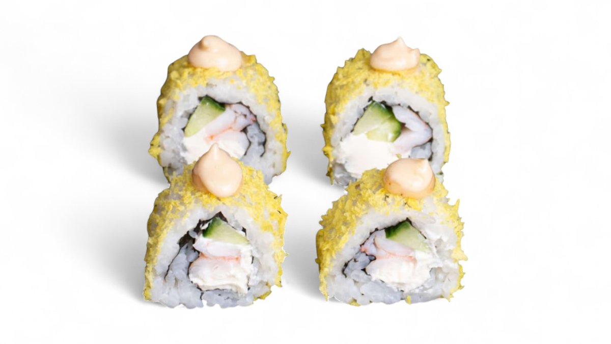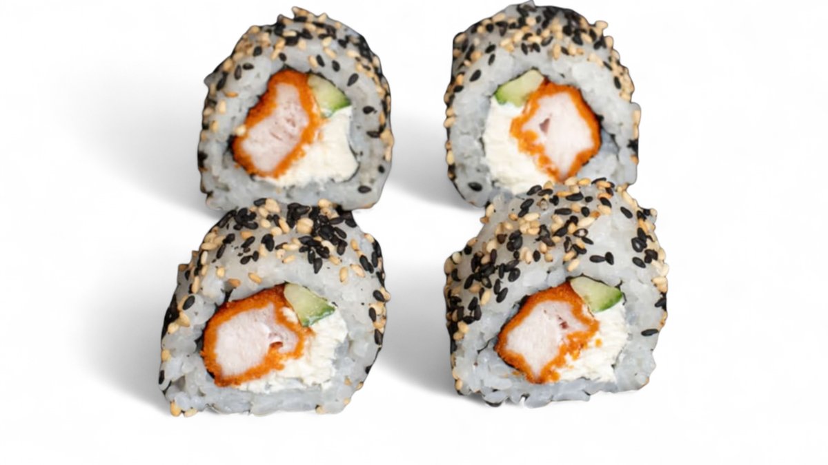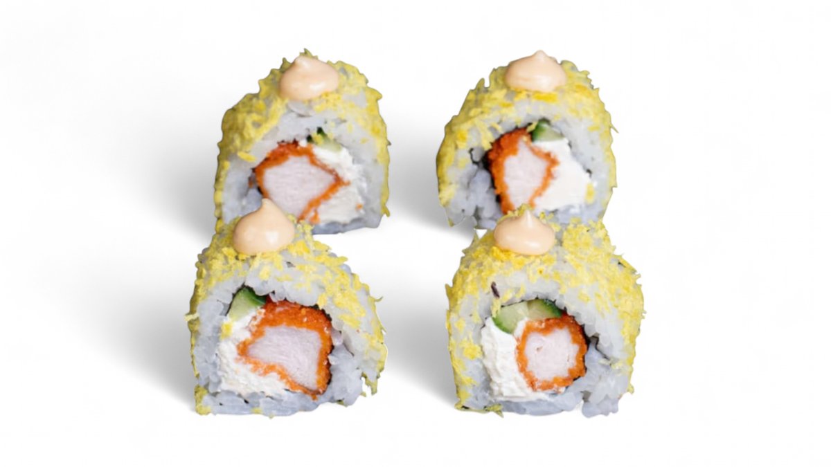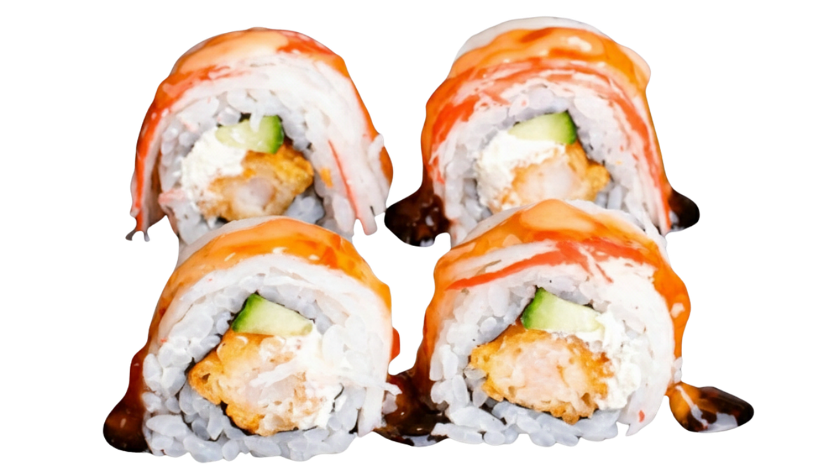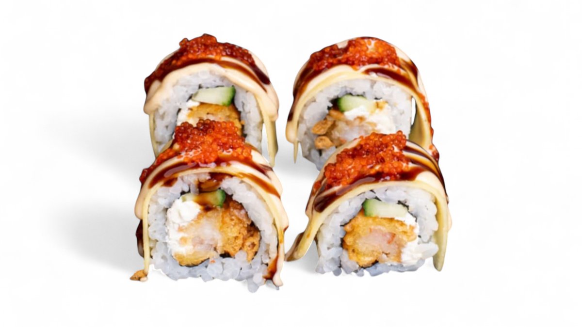 ориз, хрупкава скарида, нори, Филаделфия, краставица, манго, умами майонеза, унаги сос, тобико, хайвер 4 бр, 100г