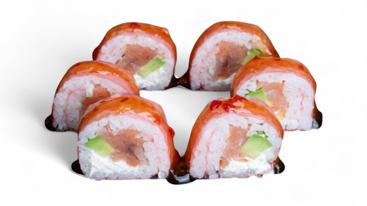 ориз, соево нори, авокадо, пушена сьомга, Филаделфия, дракон сос 6 бр, 140г
