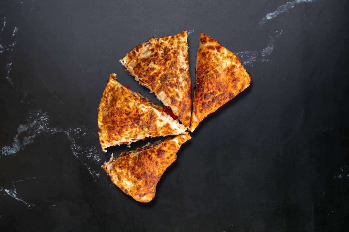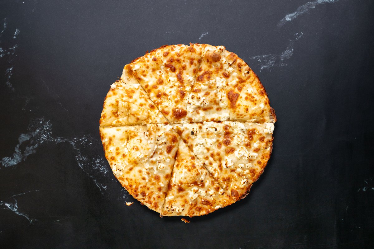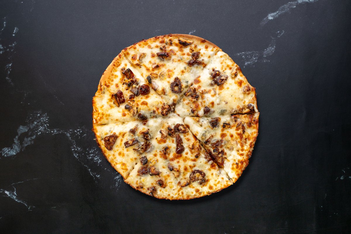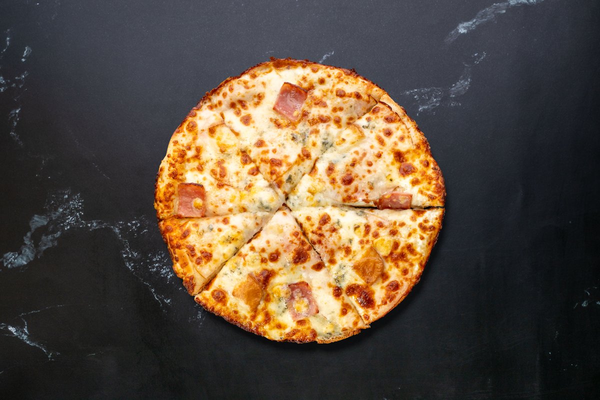 готварска сметана, пилешко филе, кашкавал, бекон, топено сирене, синьо сирене, Пармезан 24см