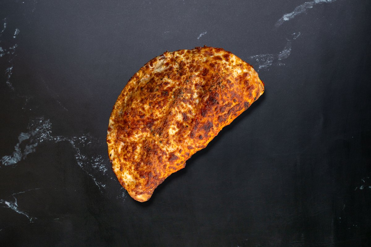 затворена пица с доматен сос, шунка, луканка, кашкавал, пипер гъби, топено сирене, кисели краставици, яйце, зехтин, риган 24см