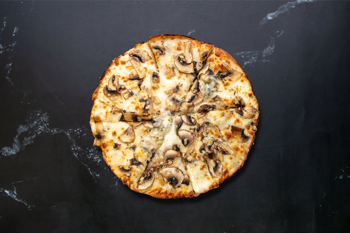 сметана, гъби, кашкавал, синьо сирене, моцарела топено, сирене, мащерка 40см