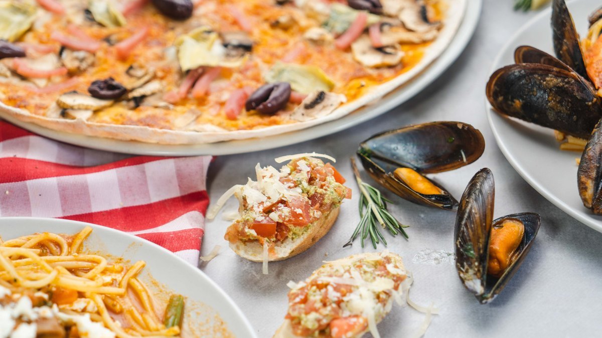 Σπαγγέτι με γαρίδες, φρέσκα μύδια και σκόρδο σε ελαφριά σάλτσα ντομάτας