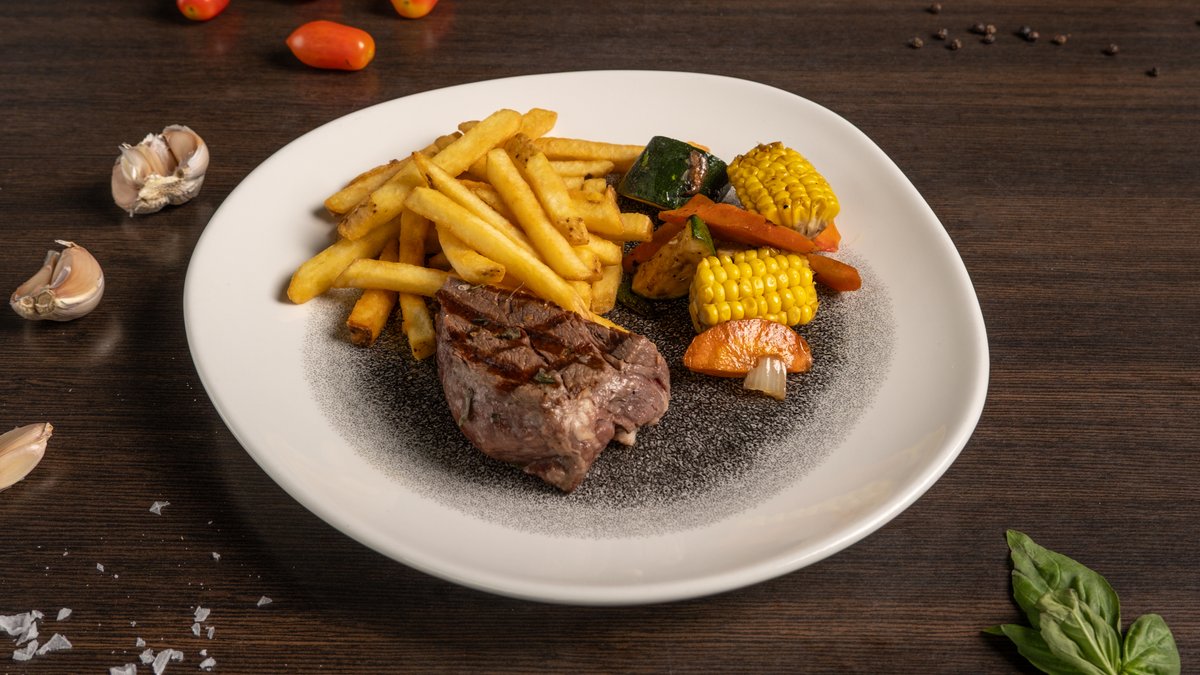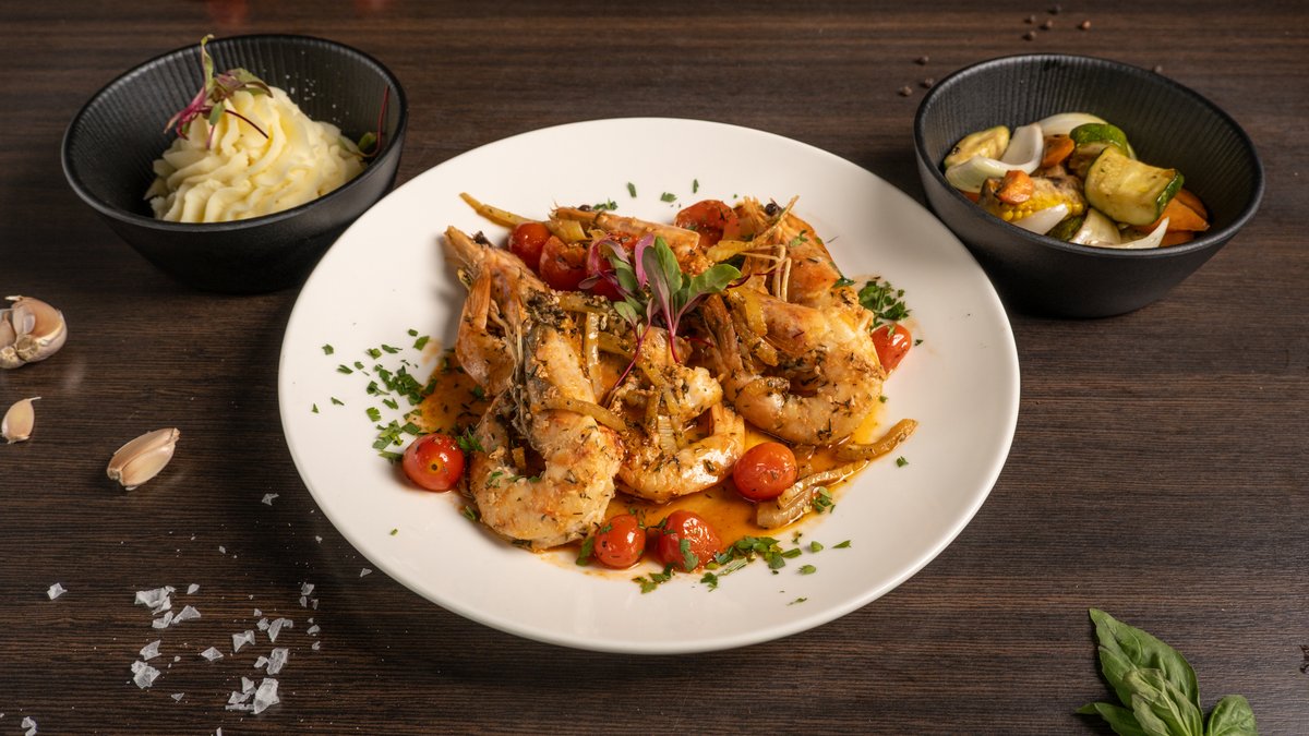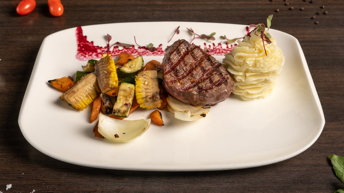 Free-range grilled chicken, marinated with Italian herbs. Served with mashed potatoes and sautéed vegetables