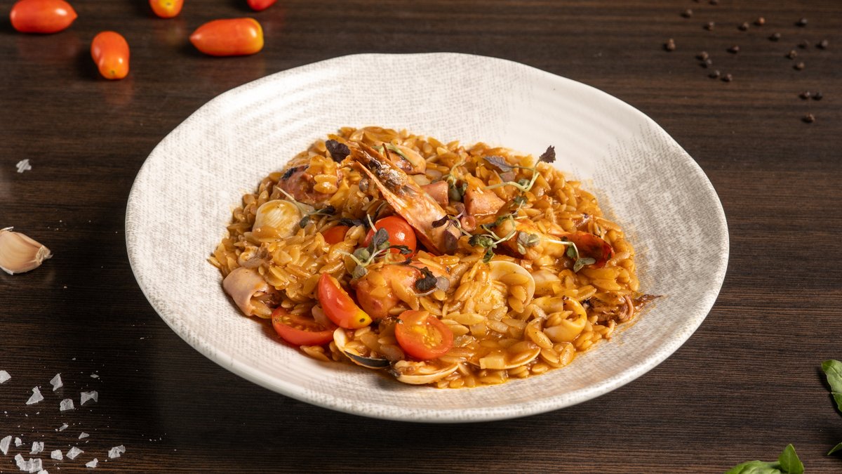 Risotto with wild mushrooms, fresh cream and parmesan flakes