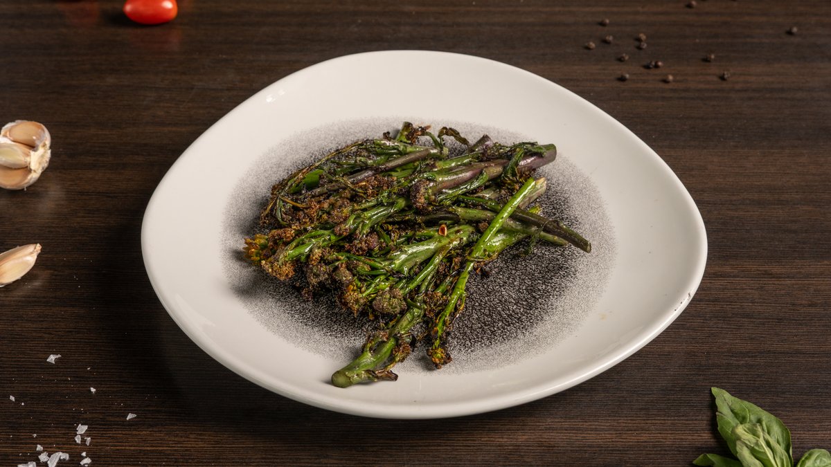 Creamy smashed burrata cheese with marinated artichokes, lemon zest & anchovy parsley olive oil.