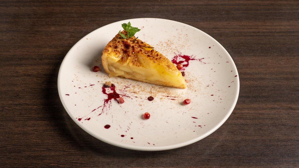 100% plant-based apple pie with spiced apples & golden, flaky crust – served warm