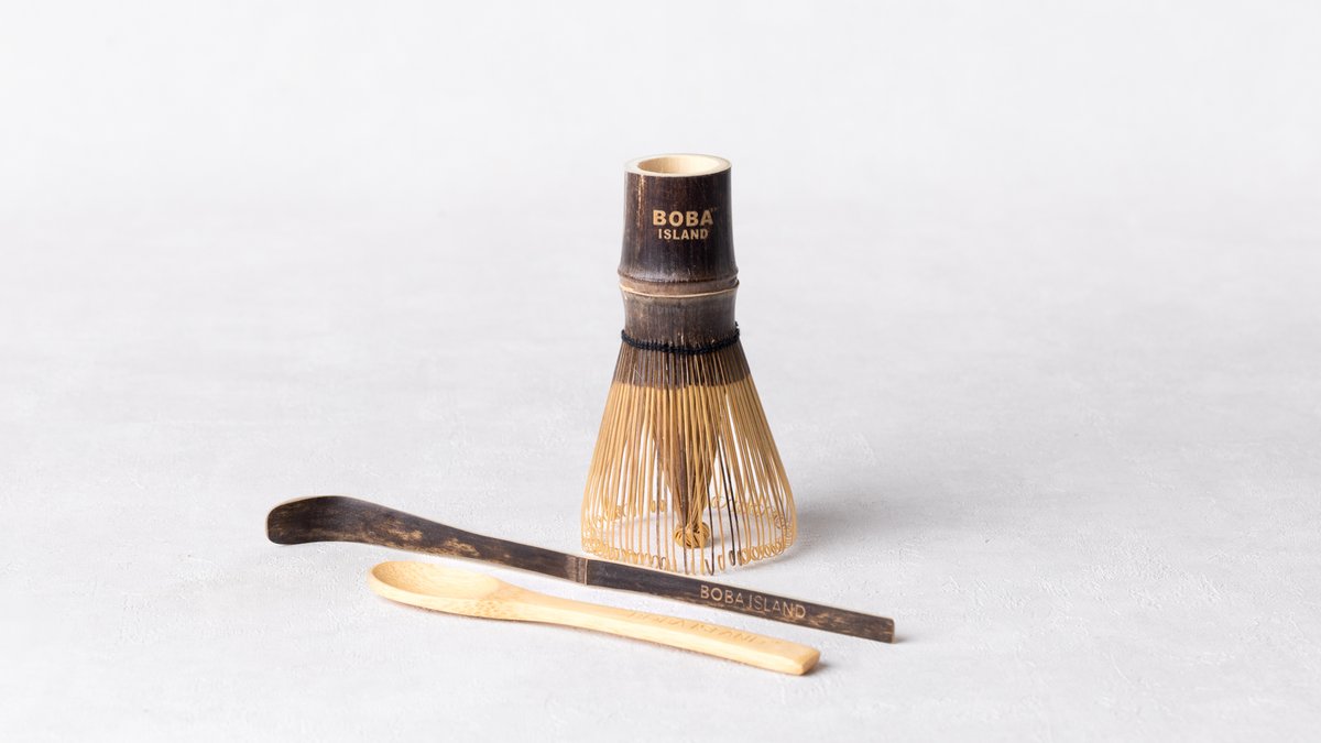 Elevate your tea ritual with the Dark Bamboo Matcha Whisk Set, a rare and refined collection designed for an authentic matcha experience. Handcrafted from sought-after dark bamboo, each piece is engraved for an elegant finish. The centerpiece, a chasen (whisk) with 100 finely carved prongs, creates the ideal froth and smooth consistency for traditional matcha. Completing the set are a classic chashaku (scoop) for precise portions and a matching engraved spoon, bringing both beauty and functionality to every preparation. More exclusive than ordinary bamboo, dark bamboo is prized for its rarity, durability, and rich tone, making this set a distinctive upgrade for any matcha lover
