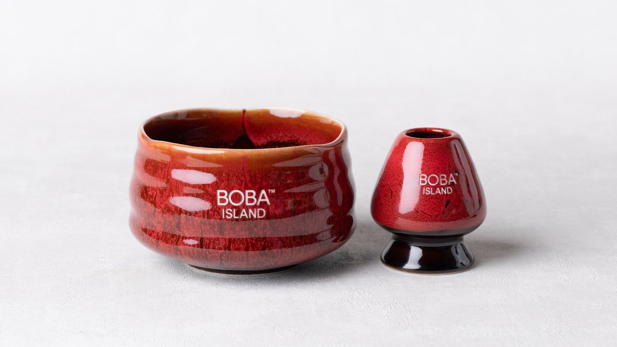 Beautifully crafted red ceramic matcha bowl, whisk holder set, designed for an authentic and stylish matcha making experience