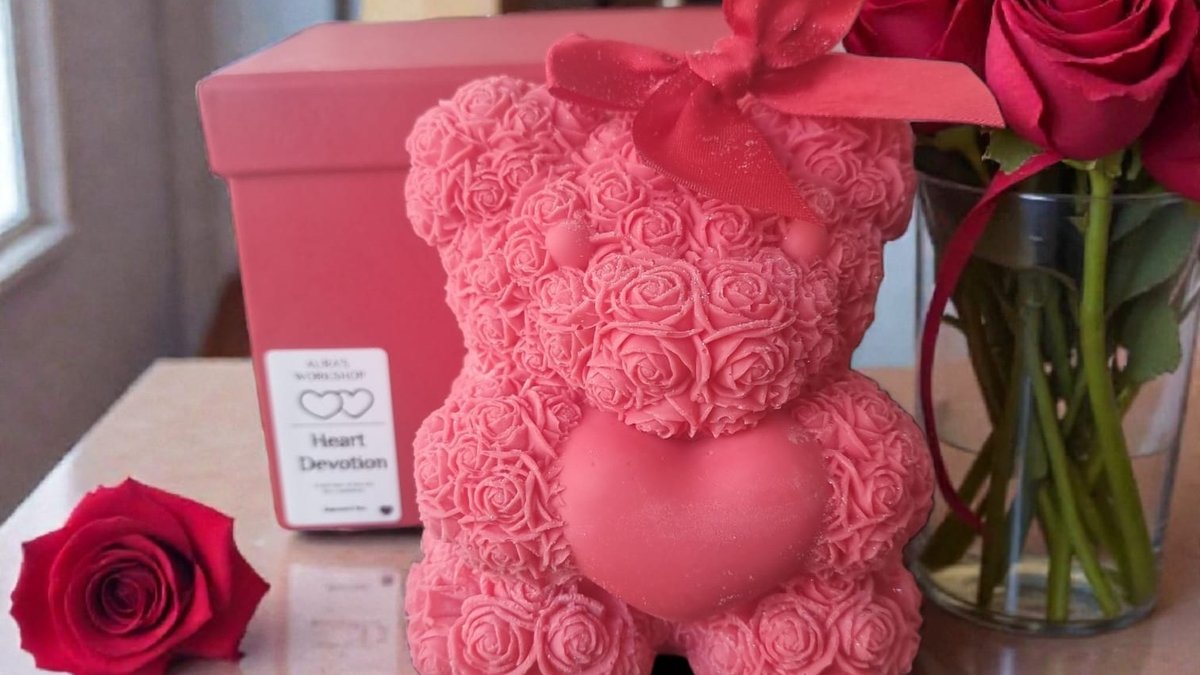 ❤️🐻 Heart Devotion Teddy Bear Candle | Berry Sweetness | Large Valentine’s Candle in Red Gift Box
