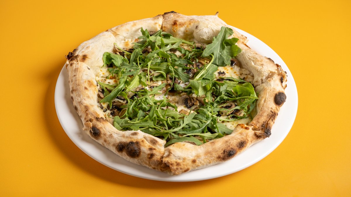 Tomato Sauce with mozzarella Cheese, arugula, cherry, tomatoes, parmesan