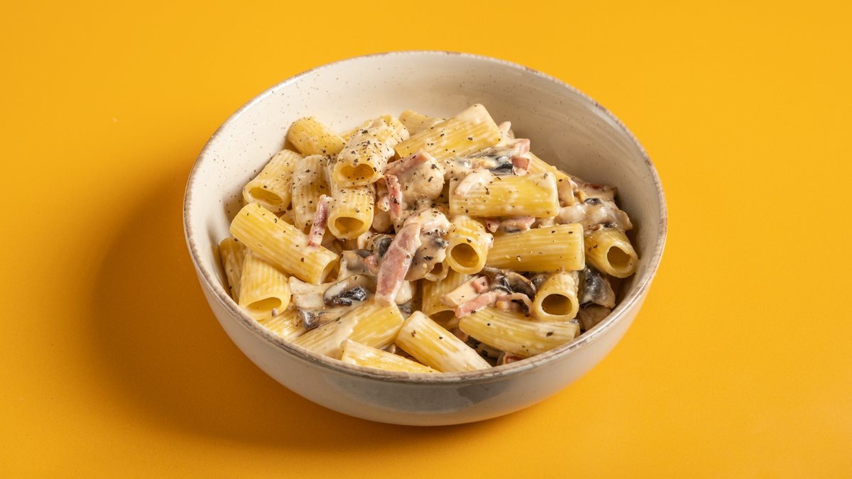 Fresh cream, chicken, bacon, mushroom, garlic, brandy. Contains salt and pepper