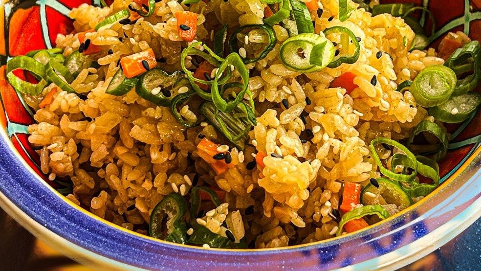 Delicious sliced chicken fried with rice, carrots, spring onions and teriyaki sauce. All in teppanyaki style