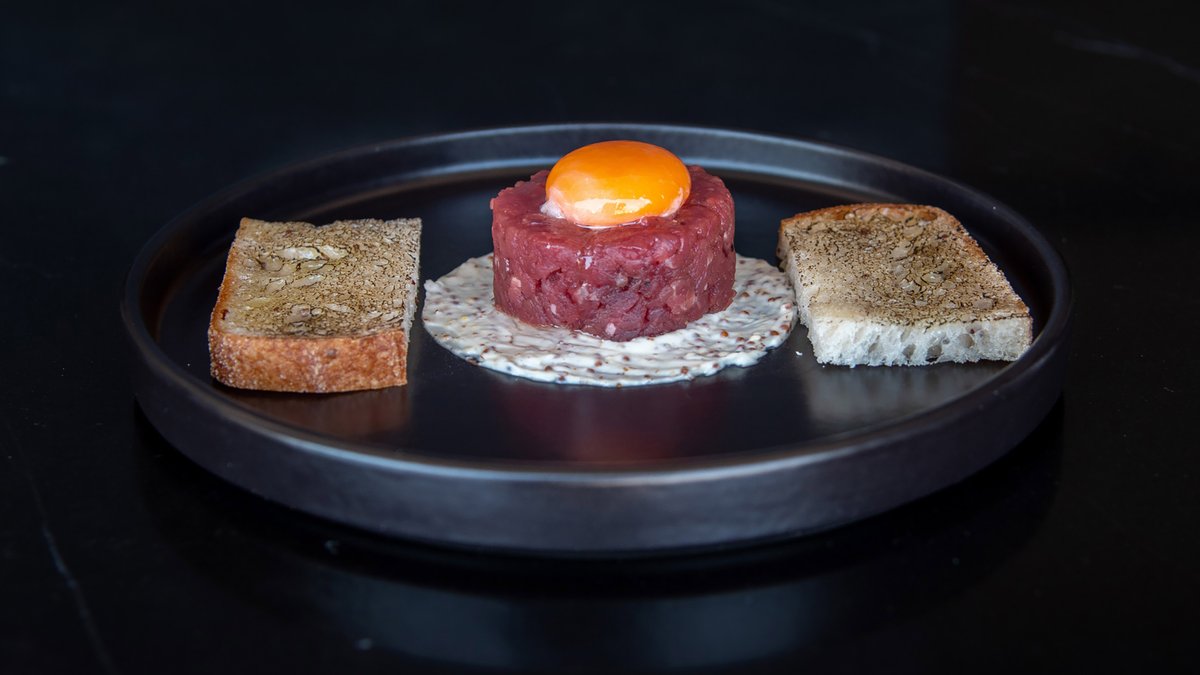 Finely chopped fillet steak served with egg yolk, mayonnaise and wholegrain mustard sauce.