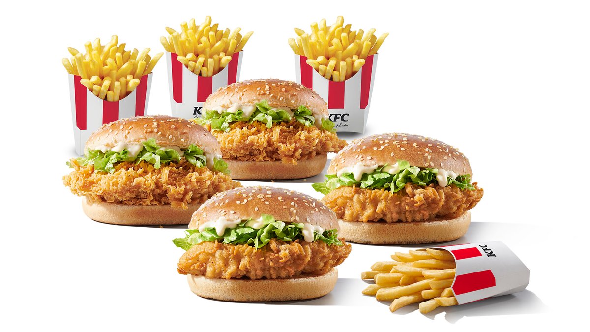 4 fillet or zinger burgers, 4 regular fries