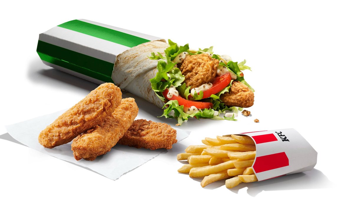 3 crispy strips plant-based, 1 veggie twister, 1 regular fries,