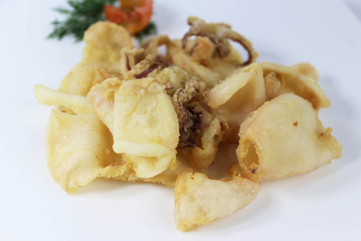 Fresh whole calamari tossed in flour, deep-fried until golden brown