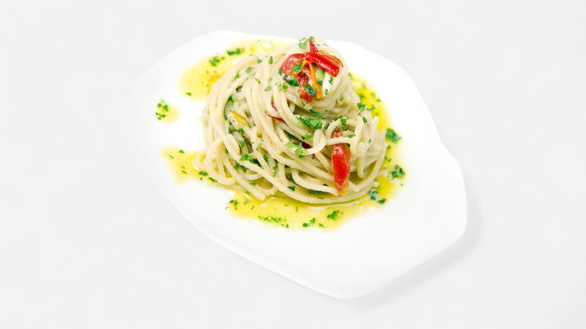 Spaghetti sautéed in extra virgin olive oil, garlic, parsley and chili