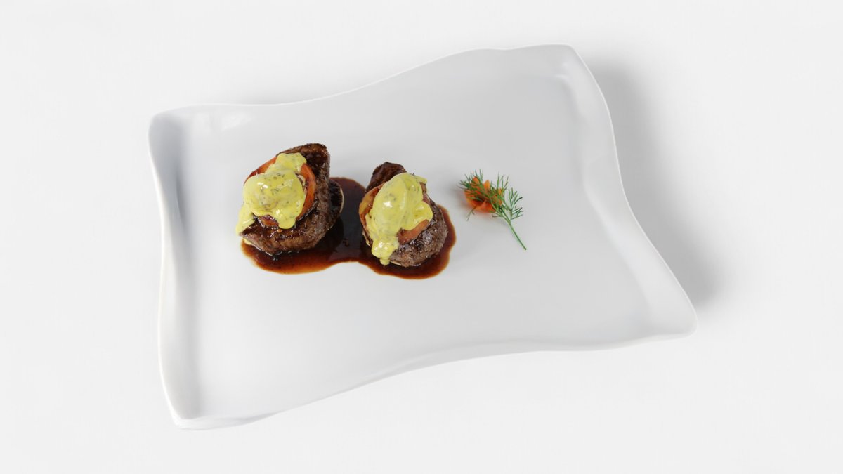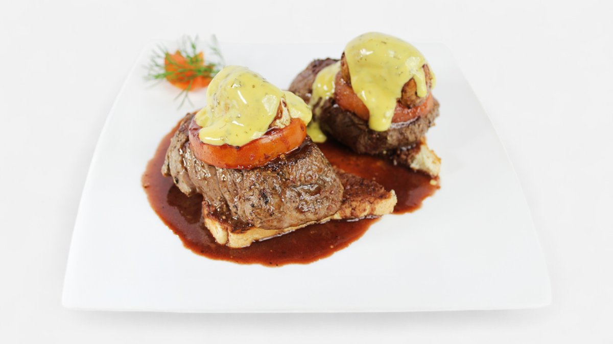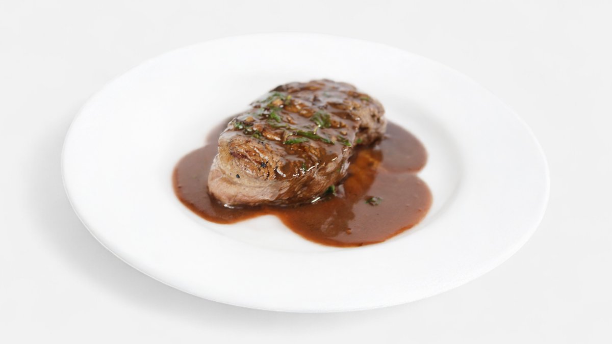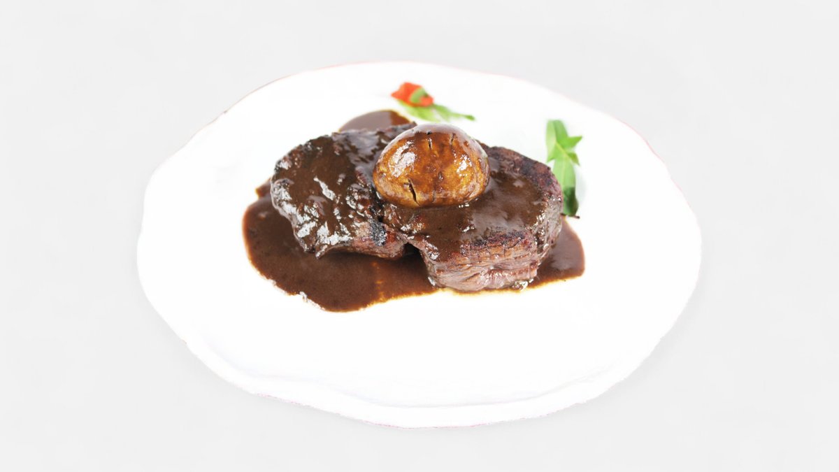 Shredded Beef fillet flamed with cognac flavored with freshly ground peppers and fresh cream