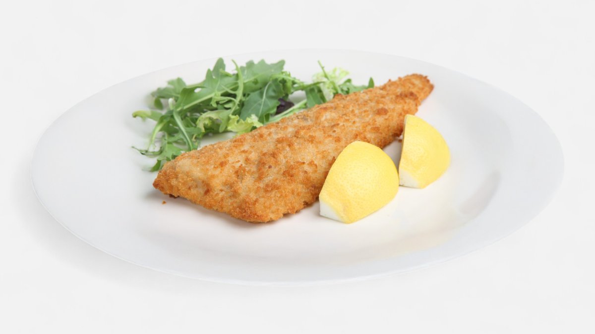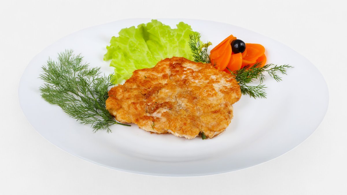 Fillet of pork stuffed with ham and cheese coated in breadcrumbs and deep fried