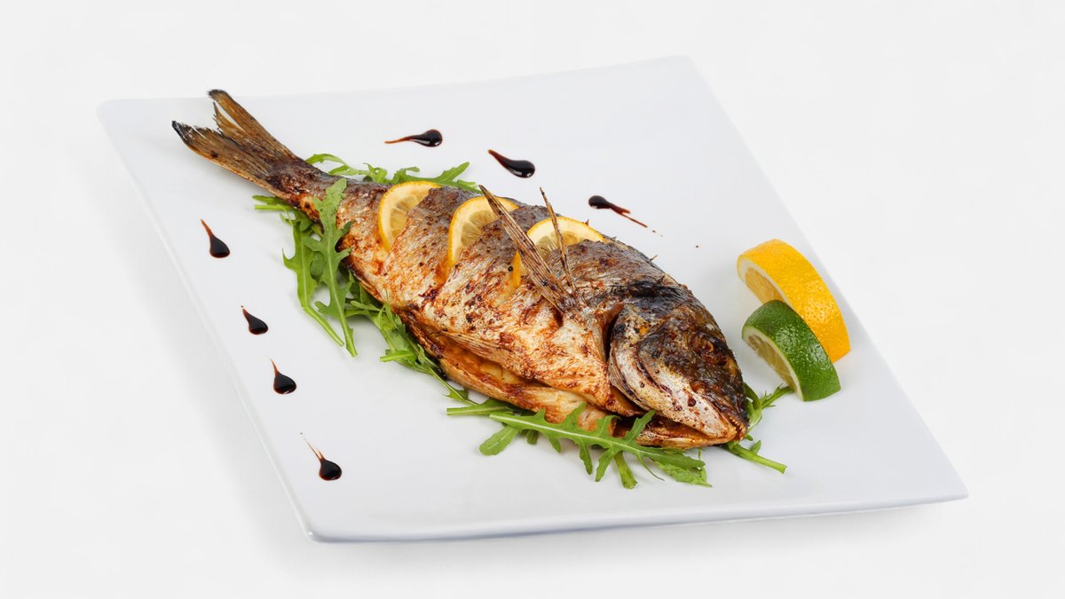 Garlic bread, fried calamari with rice, vegetables & French fries or jacket potato