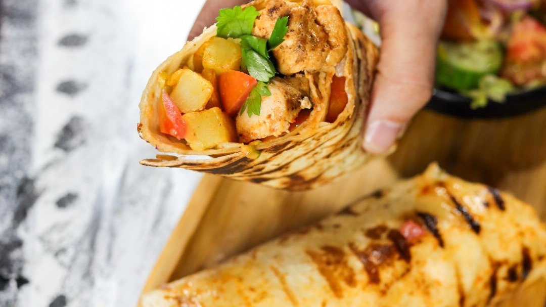 Chicken souvlaki Tortilla or Arabic Bread